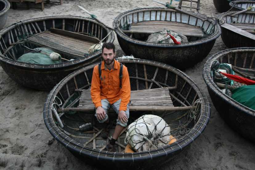 Автор в традиционной круглой рыбацкой лодке во Вьетнаме около Хой Ан