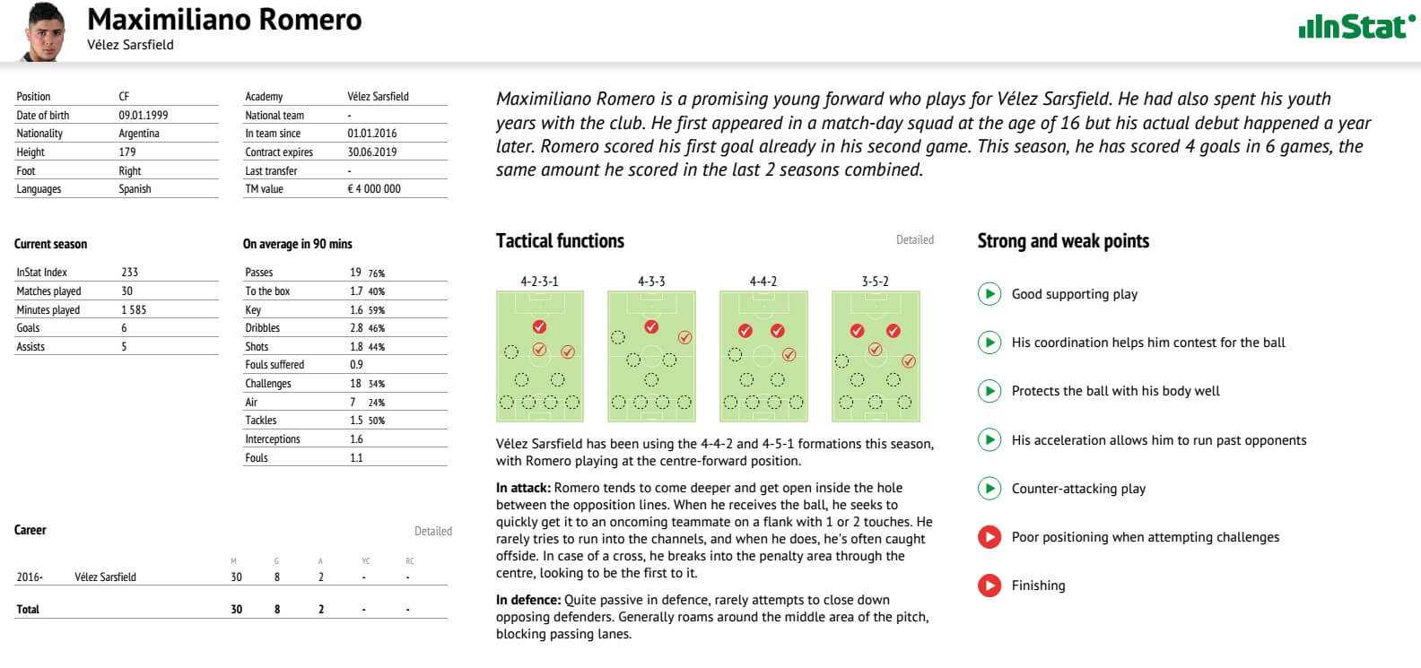 Рассмотрим подробнее о возможностях сервиса ИнСтат. Вкладка «Instat Scout» содержит следующие данные: