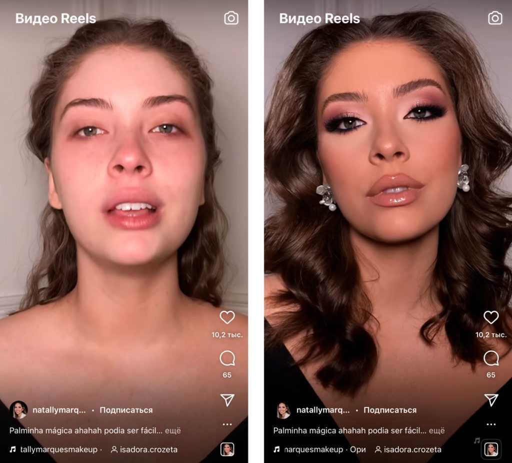 Третий тип вечнозеленого контента — это видео а-ля «ДО и ПОСЛЕ». Особенно такой контент подходит бьюти-мастерицам, визажистам, стилистам и тем, кто может показать свою работу наглядно.