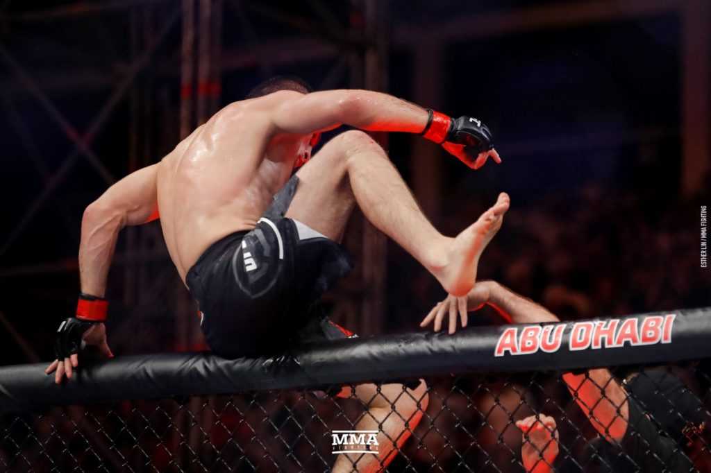 - Удары ногами по противнику, если тот касается канваса 3 опорными точками (вспоминаем бой Яна и Стерлинга). Но есть уточнение. Если боец держится на канвасе ногами и 1 рукой, то он может получить с колена. В этом случае, только касание 2 руками спасет его от любого вида удара ногами. Это самое спорное правило, которое до сих пор путают в различных организациях, особенно в США.