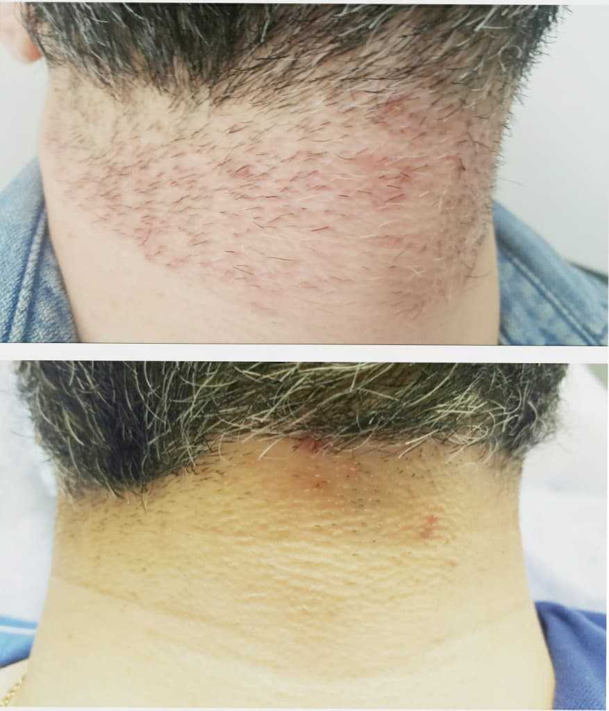 Лазерная эпиляция бороды. Надежно защищает от раздражения не шее. Результат после 5 процедуры.