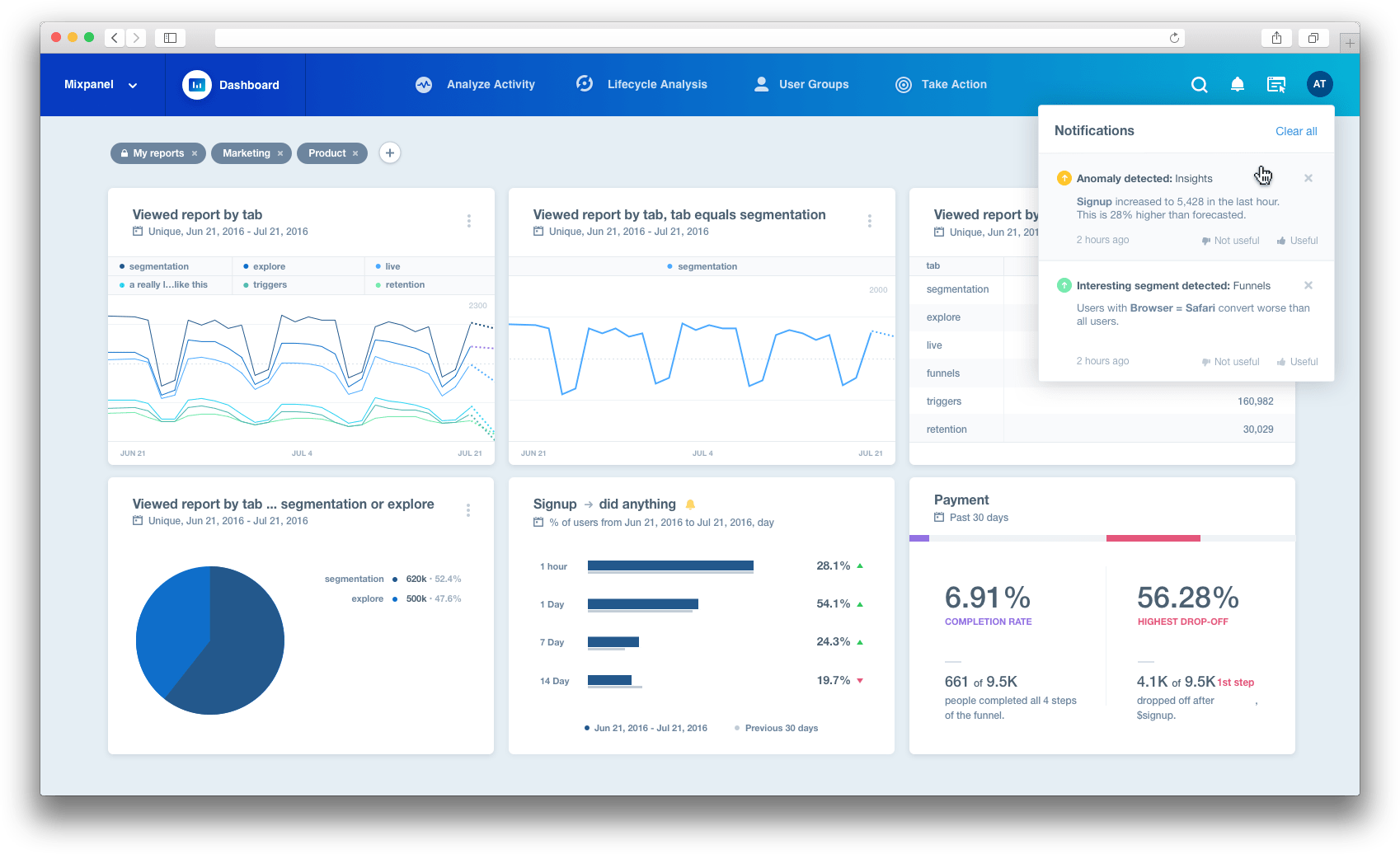 Mixpanel (аналог: Amplitude, Flurry, KissMetrics)