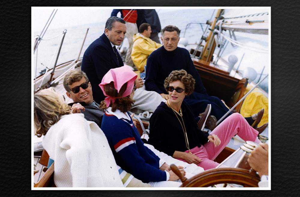 В дополнение к президентской моторной яхте Honey Fitz президент Кеннеди, матрос в глубине души, также проводил время на Manitou. Это был 18,9-метровый гоночный корабль, который был модернизированный как плавающий Белый дом. На первый взгляд, это изображение с сентября 1962 года – исследование контрастов одежды кэжуал, а Кеннеди выступает за ветровку, свитер с вырезом лодочкой и брюки чинос. А Джанни Аньелли здесь одетый в более континентальную водолазку, синие брюки и лоферы. Для председателя Fiat, который боролся за страны Оси во время Второй мировой войны, эти уютные моменты с Первой парой Соединенных Штатов Америки были тонким государственным руководством в лучшем виде.