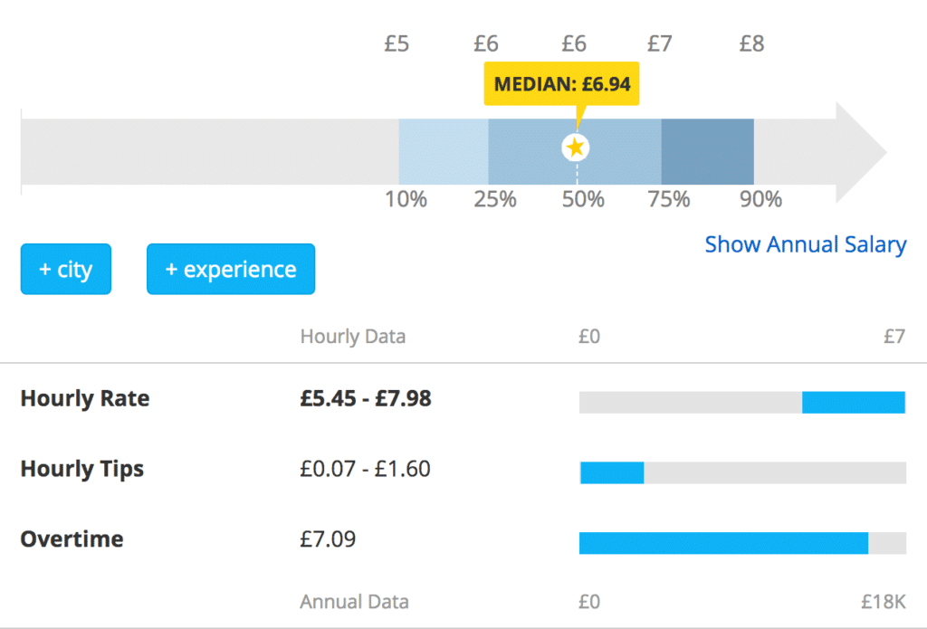 Культура чаевых в Великобритании отсутствует. По данным PayScale, британский бармен в среднем зарабатывает 6,75 фунтов стерлингов (8,86 USD/час, 18 500 USD в год), это худший показатель среди трех перечисленных стран и доп часы здесь не помогут. Данной зарплаты хватит едва сводить концы с концами.