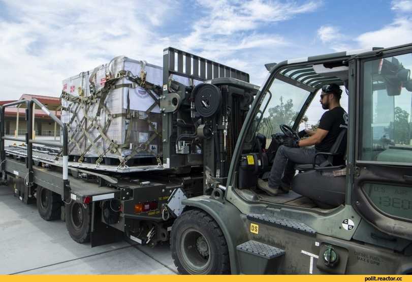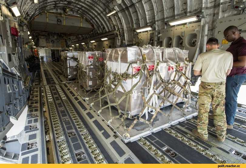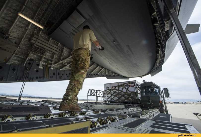 Погрузка второй партии аппаратов ИВЛ для России на авиабазе Марч ВВС США.