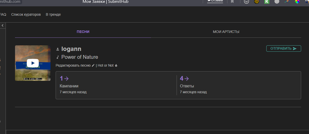 Отобрали список кураторов вашего жанра и необходимой площадки. Я выбрал жанр LOFI, отобрал 5 кураторов. Пополнил счет премиум кредитами (если отправляешь заявку премиум, то кураторы обязательно послушают твой трек и дадут обратную связь).