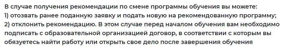 Перед обучением соискатель должен будет заключить договор на обучение: