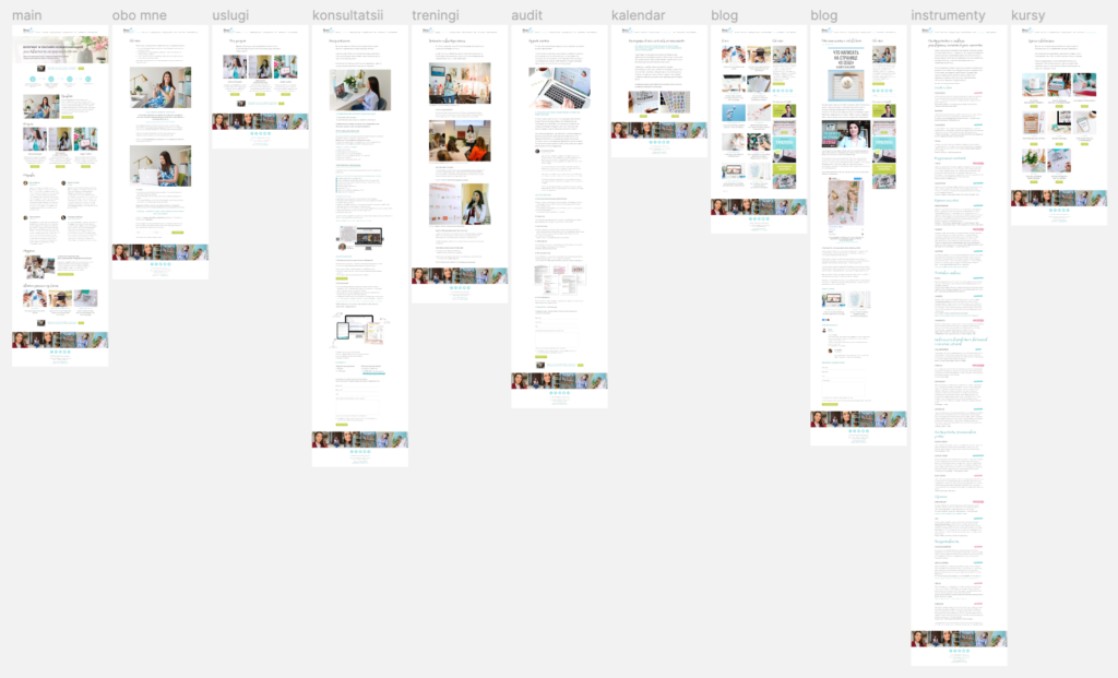 Когда мы согласовали весь дизайн-проект, настало время внести изменения на сайте. Для этого мне понадобилась помощь технического специалиста, но сначала мы с дизайнером решили, как именно будет выглядеть каждая страница на сайте.