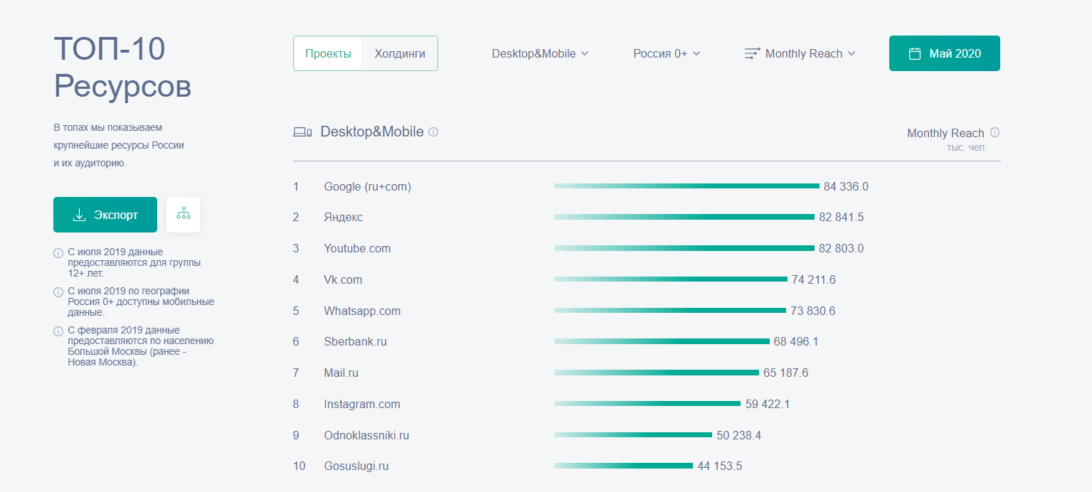 В топ-10 проектов в России от MediaScope Instagram занимает восьмое место.