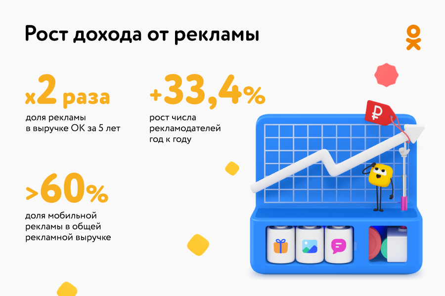 В 2019 доходы с рекламы превысили 40% от общей выручки платформы. Самым растущим сегментом стала мобильная реклама — ее доля от общей рекламной выручки в 2019 году превысила 60%. Количество рекламодателей выросло на 33,4% от года к году.